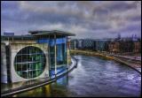 Das Marie-Elisabeth-Lüders-Haus bildet mit dem Bundeskanzleramt und dem Paul-Löbe-Haus das Band des Bundes – eine Anordnung von Gebäuden am Spreebogen in Berlin-Mitte.Das Paul-Löbe-Haus und das Marie-Elisabeth-Lüders-Haus bilden durch ihre Architektur eine Einheit, so zum Beispiel durch die zur Spree hin zusammenpassenden Dachkanten – die eine nach außen (konvex) und die andere nach innen (konkav) geschwungen – und die Brücke, die die beiderseits der Spree stehenden Gebäude verbindet und Marie-Elisabeth-Lüders-Steg genannt wird. Der Architekt beider Häuser bezeichnet die Brücke als „Sprung über die Spree“. Die Verbindung der Gebäude von Ost nach West symbolisiert die Zusammengehörigkeit von Ost- und Westdeutschland und ist ein Gegenpol zur Vision der Nationalsozialisten von einer – durch eine Nord-Süd-Achse geprägten – „Welthauptstadt Germania“. Das Marie-Elisabeth-Lüders-Haus steht rechts und links des früheren Verlaufs der Berliner Mauer. Dieser Verlauf wird im Haus dargestellt und als öffentlich zugängliches Mahnmal für die Maueropfer symbolisiert. Der Versorgungstunnel Regierungsviertel verbindet das Marie-Elisabeth-Lüders-Haus mit dem Jakob-Kaiser-Haus, dem Reichstagsgebäude und dem Paul-Löbe-Haus. |